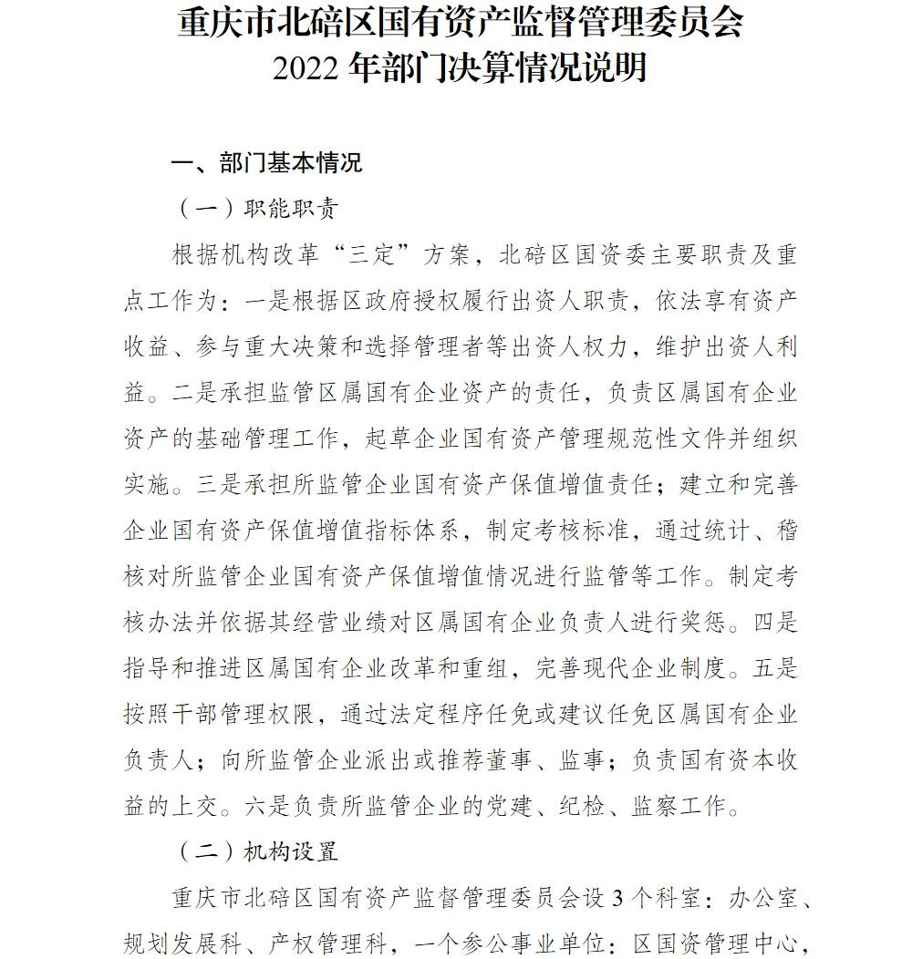 重庆市北碚区国有资产监督管理委员会2022年部门决算情况说明及附表.pdf