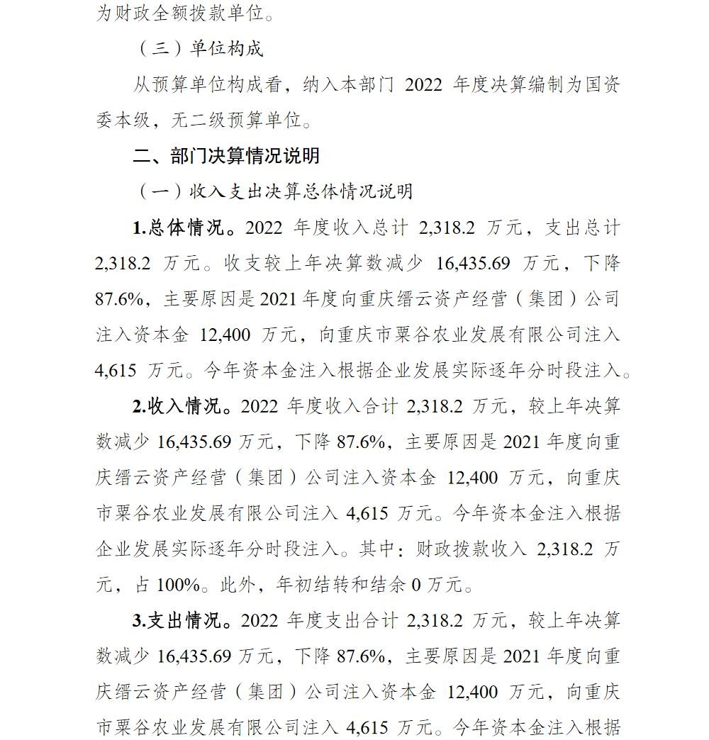 重庆市北碚区国有资产监督管理委员会2022年部门决算情况说明