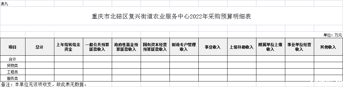 重庆市北碚区复兴街道农业服务中心2022年无使用政府性基金预算拨款安排的支出。