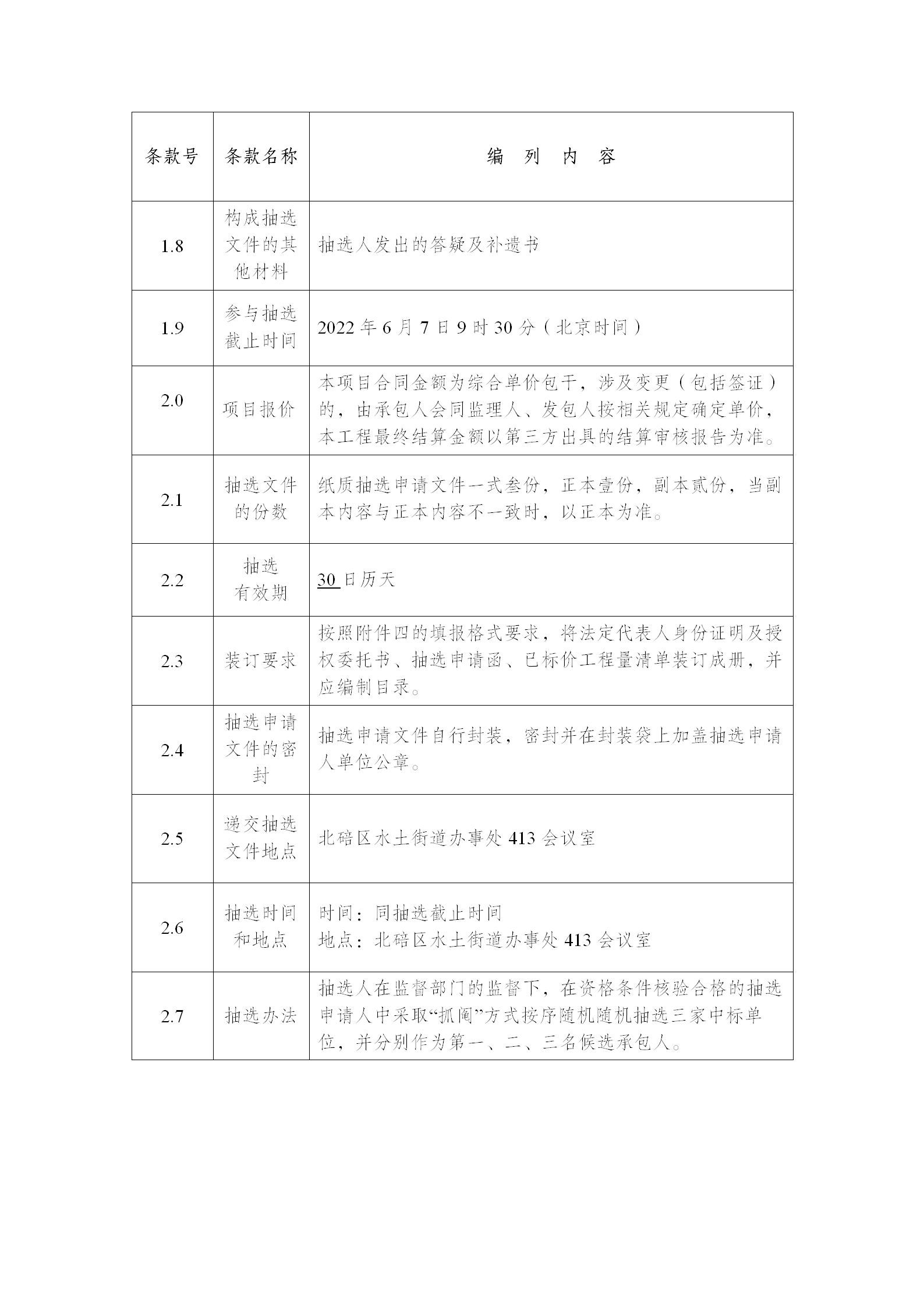 3、现场拆封第一候选人抽选申请文件,如第一候选人提供的清单某一项单价或总价超过发包人发布的工程量清单综合单价,则取消第一候选人资格,依序替补并核验。