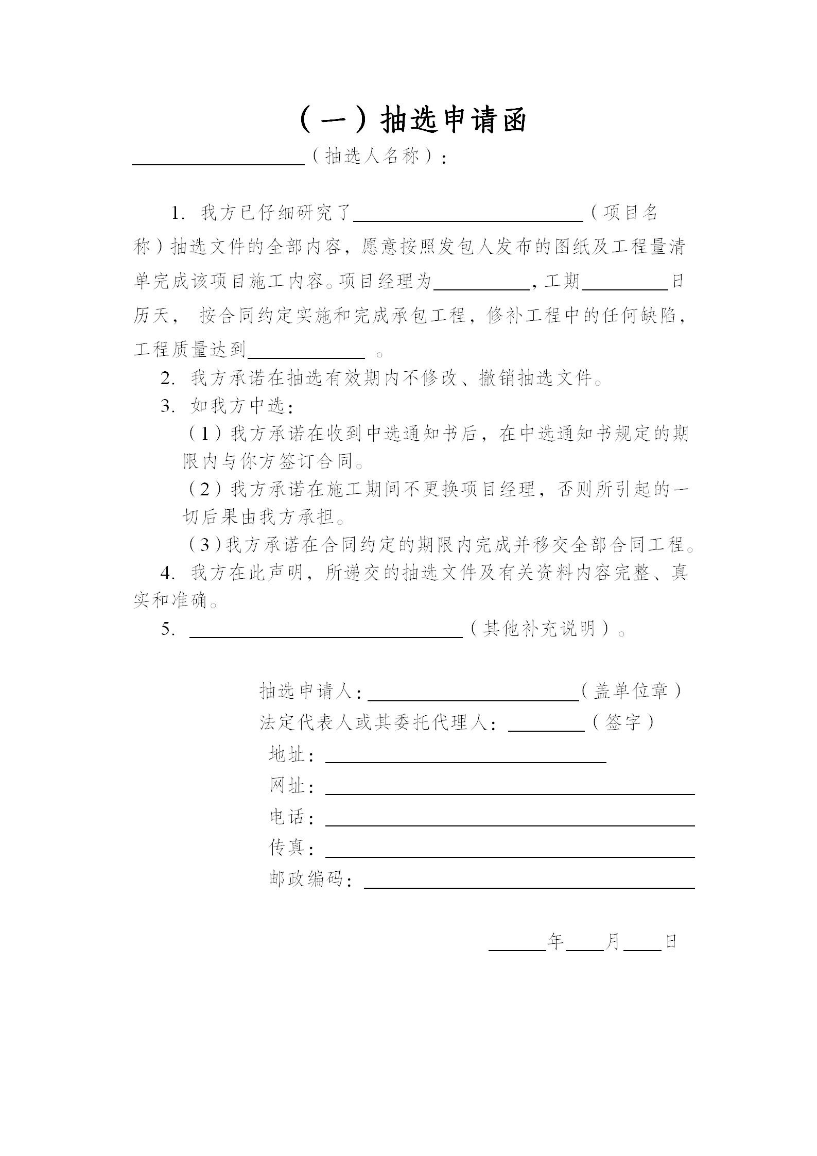 附件四、抽选申请文件填报格式