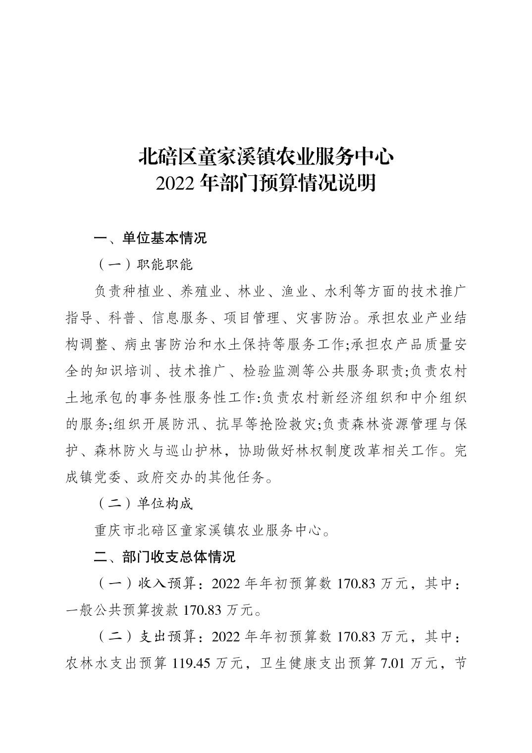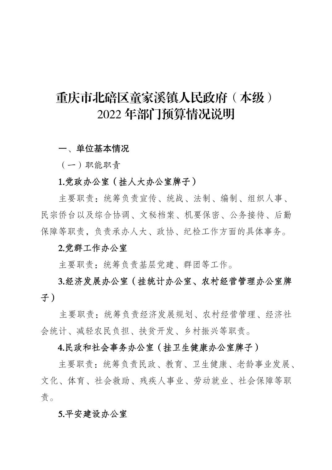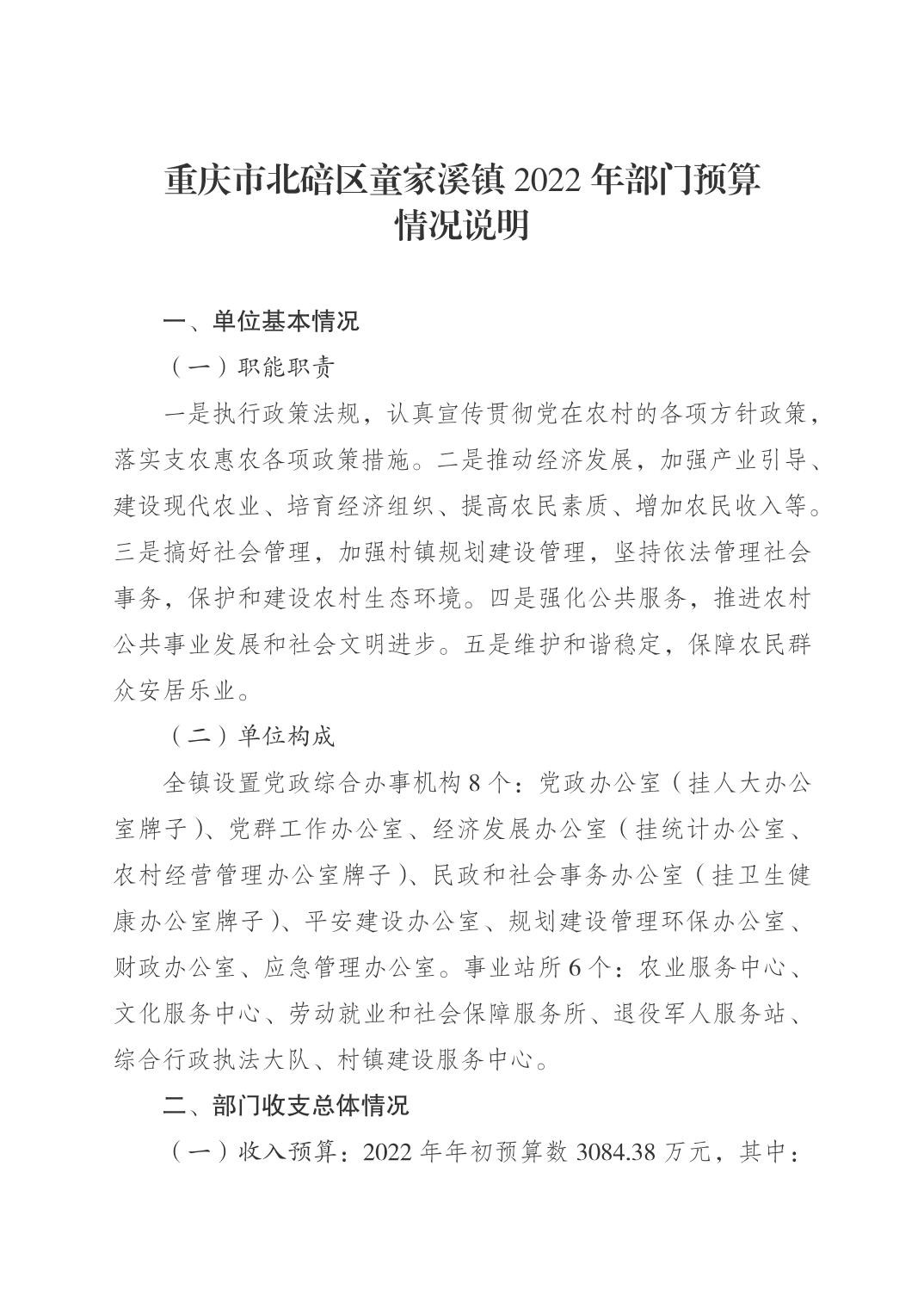 重庆市北碚区童家溪镇2022年部门预算情况说明